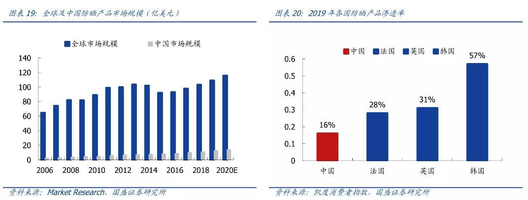 從視角,我國防曬產(chǎn)品仍處于發(fā)展初期,增長空間巨大。