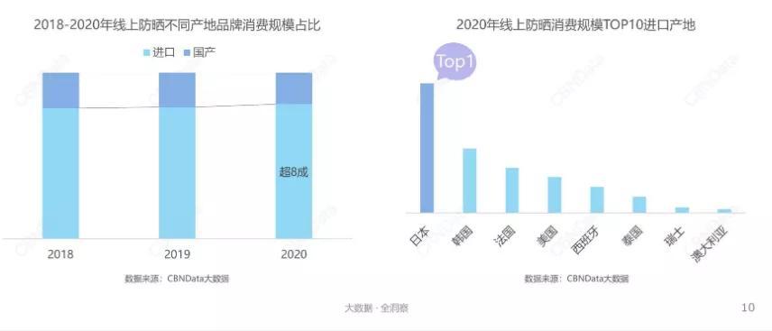 以進(jìn)口防曬產(chǎn)品為主目前,市場上使用廣的還是進(jìn)口防曬產(chǎn)品,根據(jù)CBNData數(shù)據(jù)顯示,2020線上防曬產(chǎn)品進(jìn)口品牌消費規(guī)模占比超8成。