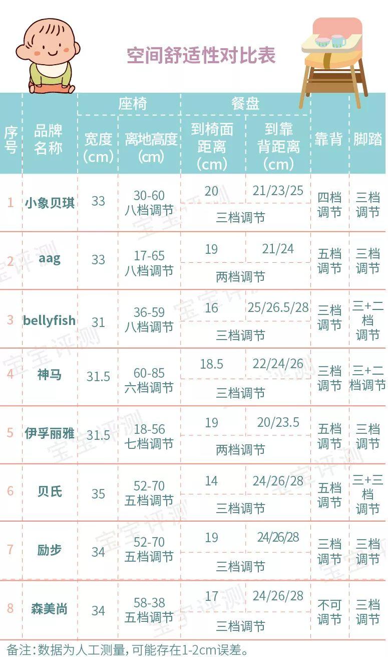 測評方法:測量并對比各款寶寶餐椅的座椅寬度/離地高度、餐盤到椅面/靠背的距離等,再對各款餐椅的調(diào)節(jié)功能進(jìn)行比較。