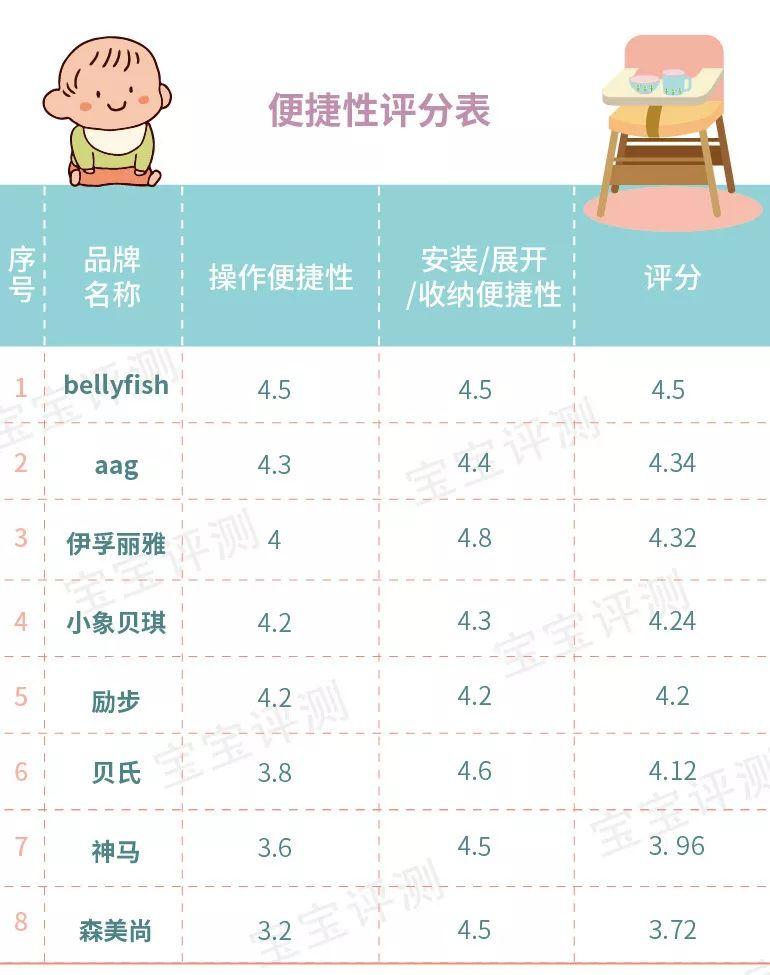 8款寶寶餐椅終的總分及排名情況如下: