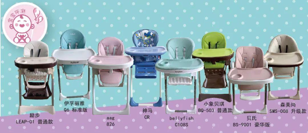 ②8款樣品均配有餐盤、靠背、帶、腳踏;除伊孚麗雅外,其他7款還配有防滑柱。