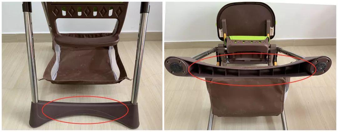 另外,小象貝琪、勵步這兩款餐椅的底部是用塑料拼接的,而非一根U型鋼管做出來的,這種中空的底部設(shè)計穩(wěn)定性可能會打折扣。