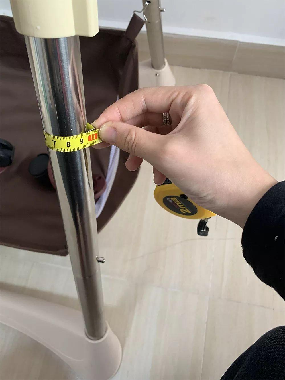 ①8款寶寶餐椅所使用的支撐鋼管,外徑周長均在9.5cm-10.5cm左右,比上篇測評的100-200元價位餐椅使用的鋼管要粗一點(diǎn)。