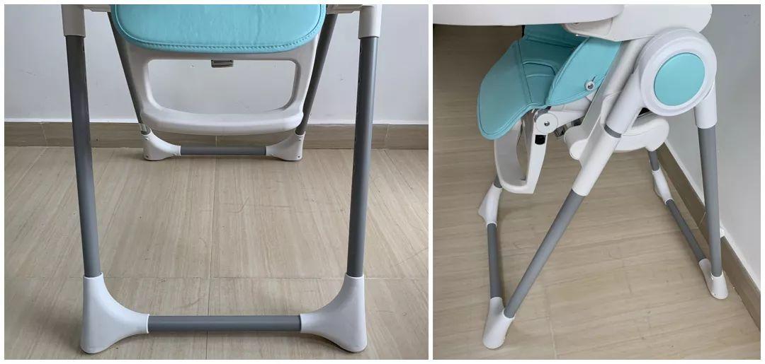 ④aag:座椅高度/腳踏調(diào)節(jié)順滑,餐盤較短易抽出,靠背調(diào)節(jié)有點(diǎn)緊;帶為一鍵式,容易打開;凈重量6.7kg左右,搬移較輕松,但后腿配有防滑墊,推行不便。