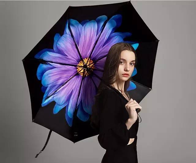 這把“蕉下”專業(yè)防曬傘,黑漆漆的傘面,打開后在傘下有一朵花驚艷盛開。