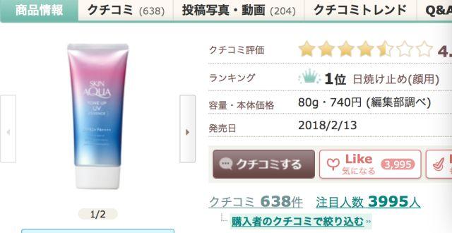 先來(lái)看看今年cosme大賞防曬底乳佳第一!