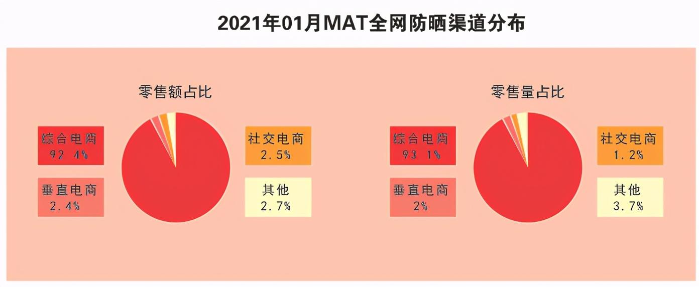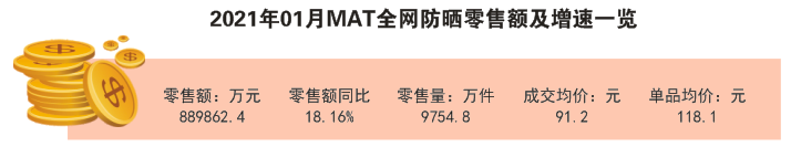 春暖花開時(shí)節(jié),防曬品銷售也逐漸升溫。本期數(shù)據(jù),我們來回顧下防曬品線上近一年的表現(xiàn)。歐特歐國際咨詢公司調(diào)研的大數(shù)據(jù)顯示,2021年01月MAT(2020年2月-2021年1月)全網(wǎng)防曬零售額超過88.98億元,同比增長18.16%??缇愁惍a(chǎn)品零售額達(dá)38.62億元,占總銷售額的43.4%。