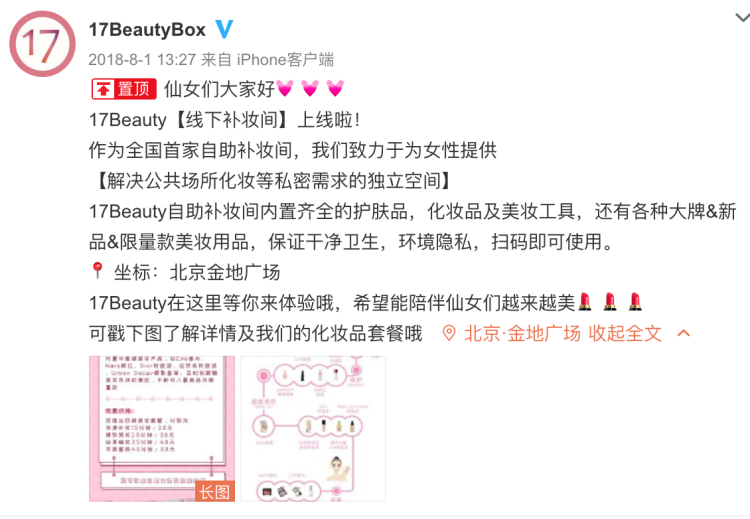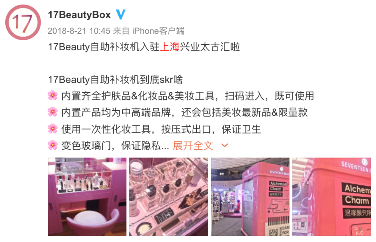 該公司的官博顯示,去年8月,共享化妝間落地上海興業(yè)太古匯地下二層。