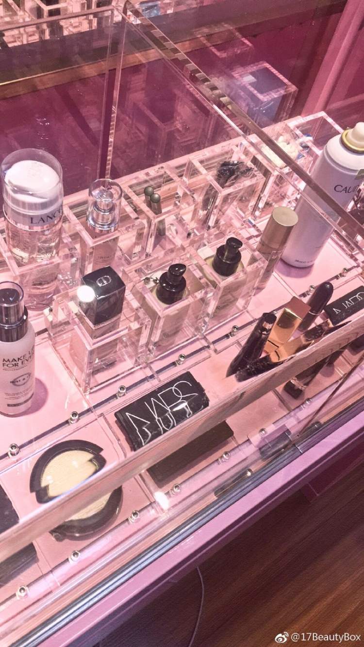 化妝臺上,隔離、防曬霜、眼影、高光、粉餅等化妝品一應(yīng)俱全,多是品牌。