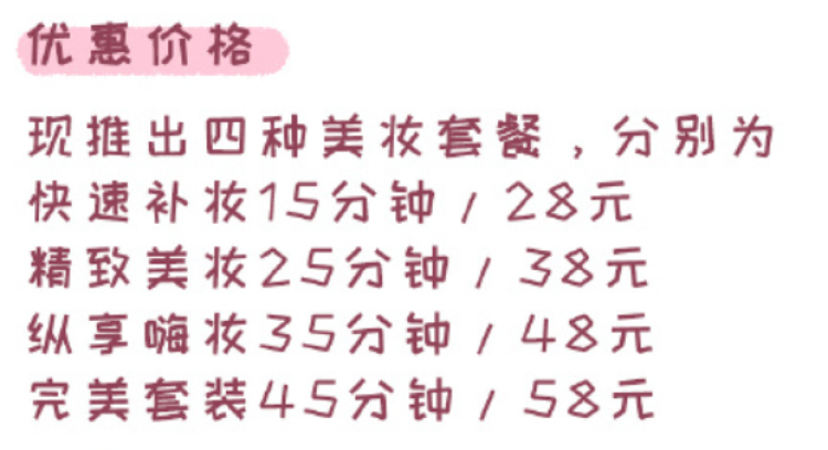 收費按化妝時間不同分4個檔次。