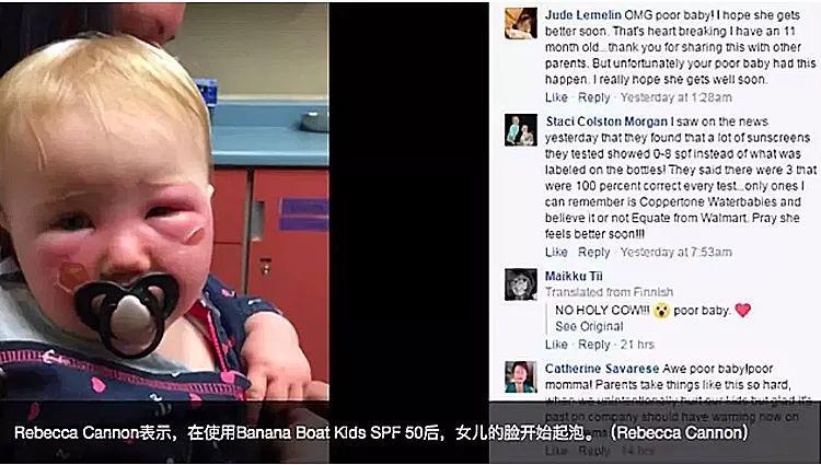 而這位寶貝并不是第一個使用香蕉船牌防曬霜后出現(xiàn)“皮膚燒傷”的孩子。