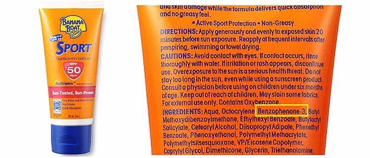 香蕉船好幾款兒童防曬產(chǎn)品中,明確標明含有 3.5% 的oxybenzone。