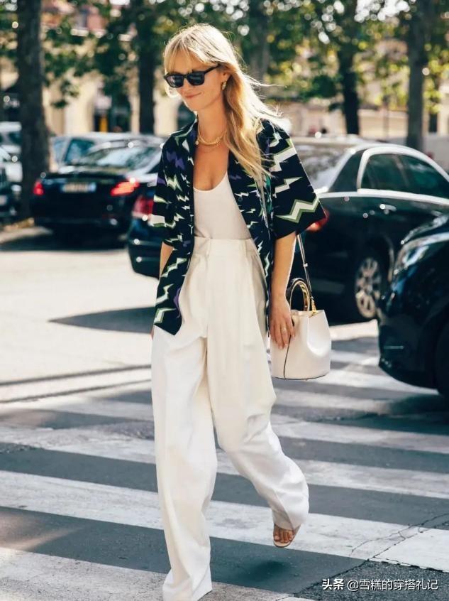 為襯衫外搭疊加亮眼的花色,色彩和花紋都到位,視覺焦點的期待感拉滿了,時尚度至少在80%以上。