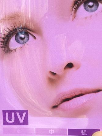 (將等量產(chǎn)品涂抹在紫外線測(cè)試卡左邊部分,觀察防曬果。)