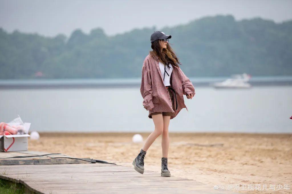 楊冪綜藝私服,又穿上了她擅長駕馭的老三樣:格紋襯衫、棒球帽、馬丁靴,又細(xì)又白的長腿一如既往地矚目,打造出夏日甜酷girl風(fēng)格。
