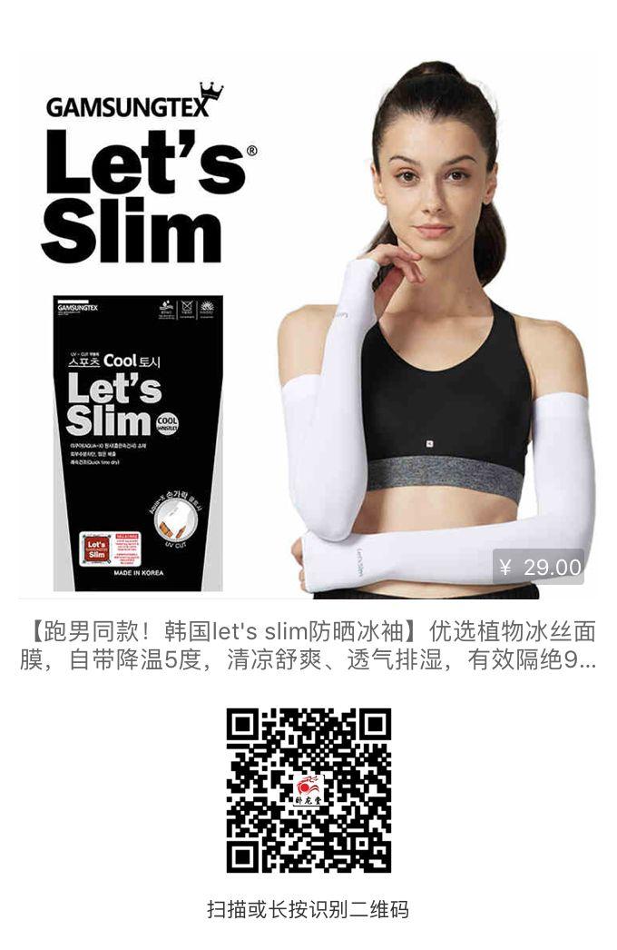 韓國(guó)let's slim冰袖是一款知名度高的防曬臂袖,它以其獨(dú)有的防曬技術(shù),以及清涼舒適的穿戴感受,受韓國(guó)年輕人喜愛(ài),韓國(guó)的各大商場(chǎng)和品牌店都有銷(xiāo)售。