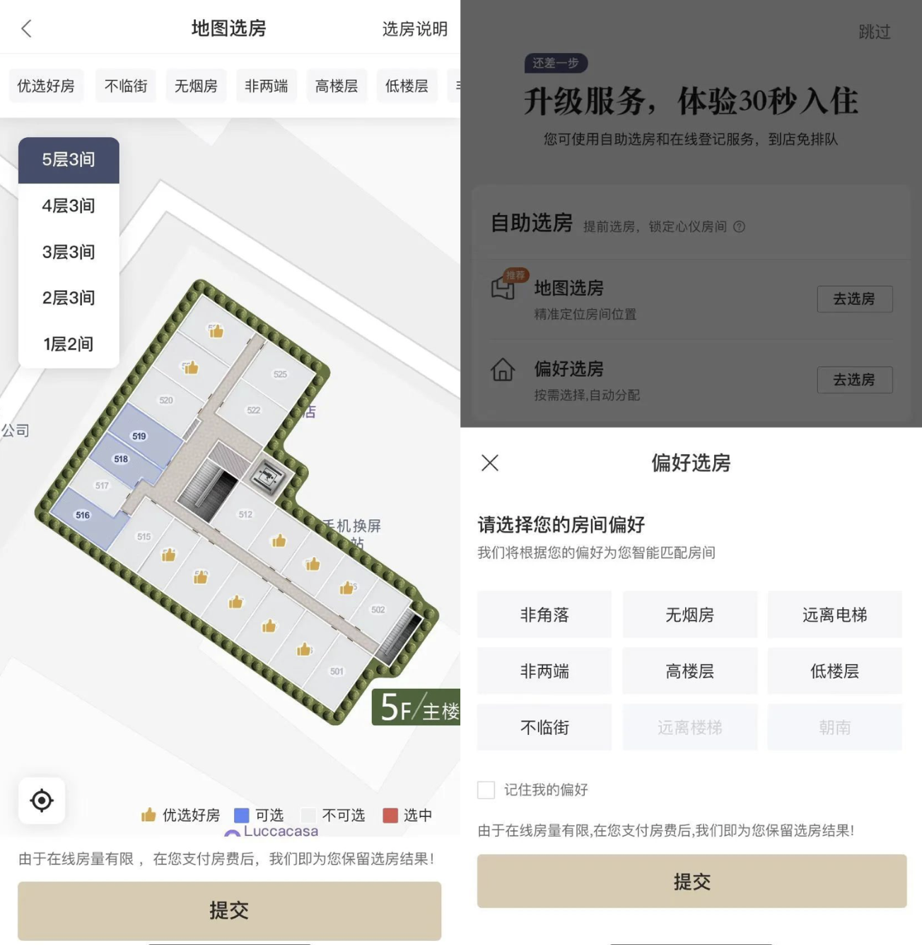 華住會(huì)自助選房界面