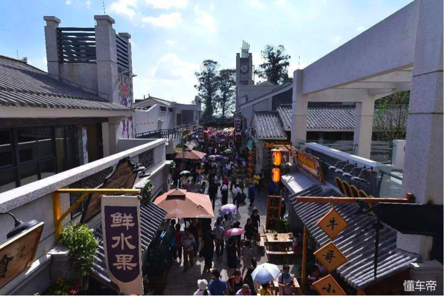 茶馬花街,位于西山風景區(qū)山腳,2017年剛投入使用的一條美食街。雖不是節(jié)假日,這里也人頭攢動,停車場停滿了車。WEY VV5的半自動泊車系統(tǒng)就大大的發(fā)揮了作用(空曠地帶,無參照物反倒不能用),可以自動掃描車位,計算泊車路線,自動控制方向盤,只需控制油門和剎車就能完成倒庫或側方停車。