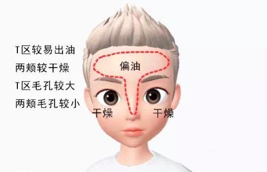 混合肌的護膚分為2個區(qū)域:U形區(qū)(臉頰及周邊)和T型區(qū)(眉骨與鼻子周邊)。