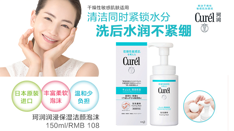 日本花王Curel珂潤潤浸保濕潔顏泡沫 108元