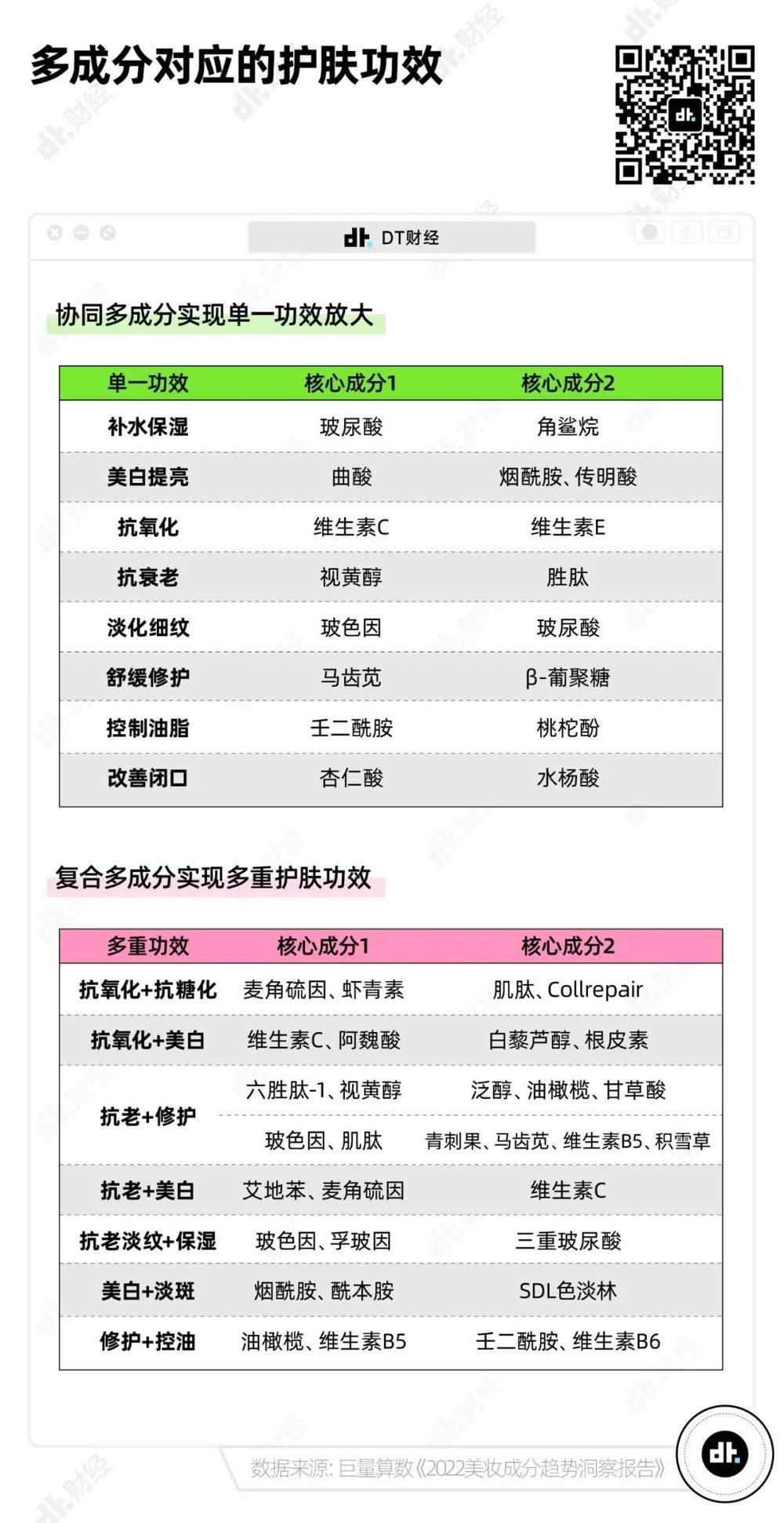 上述報告中亦提到這個趨勢,成分消費者們更傾向于通過成分組合來放大單一功、實現(xiàn)多重功。