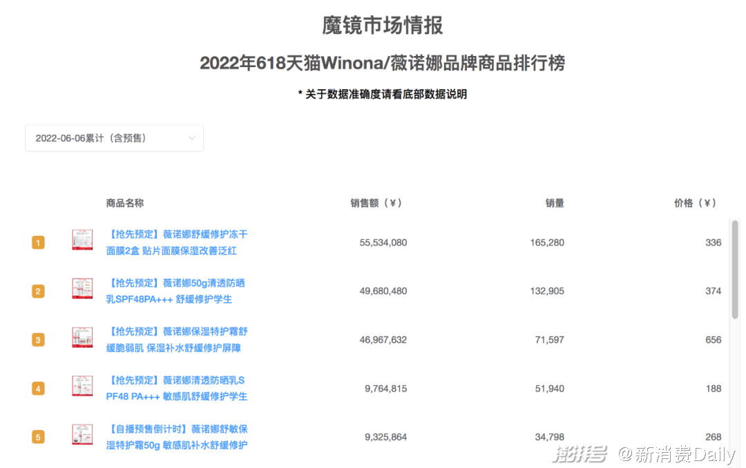 天貓方面,據(jù)魔鏡數(shù)據(jù),6月1-17日,珀萊雅、薇諾娜分別名列天貓美容護(hù)膚行業(yè)銷售額第5/7名,華熙生物旗下的夸迪名列第12。