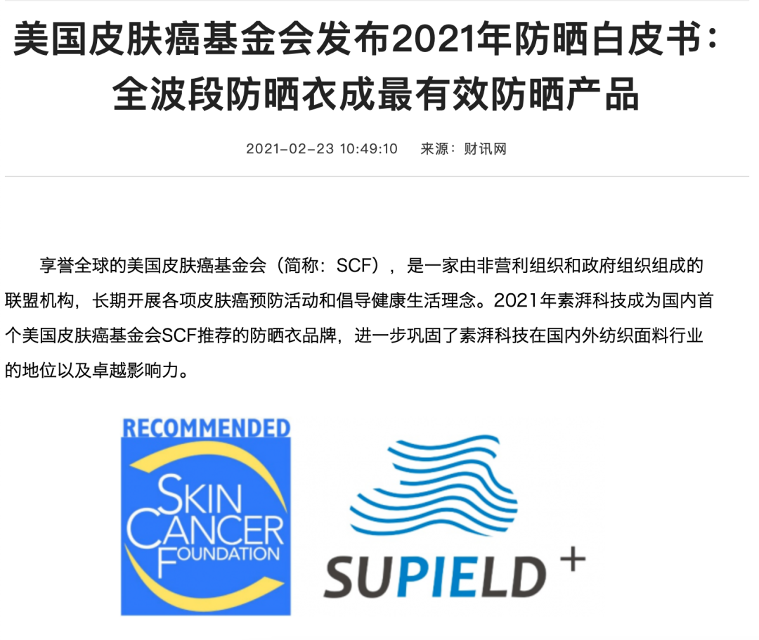 甚至,素湃成為了美國(guó)皮膚癌基金會(huì)推薦的防曬衣品牌。