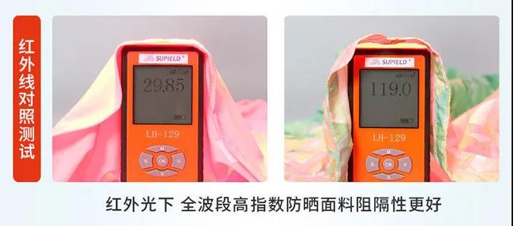 紅外線(xiàn)對(duì)照測(cè)試結(jié)果顯示,素湃全波段面料對(duì)紅外線(xiàn)的阻隔性更加。