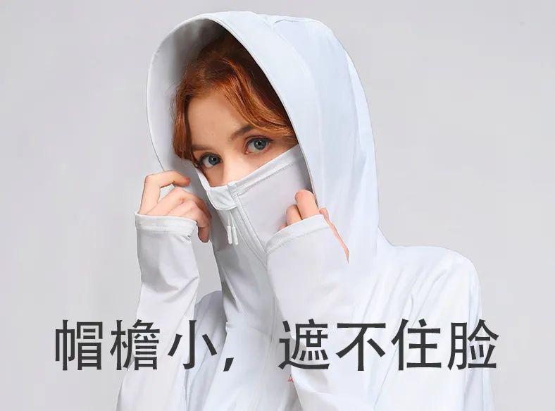 有些防曬衣上也有帽子,但帽檐都太小了,壓根遮不住臉。