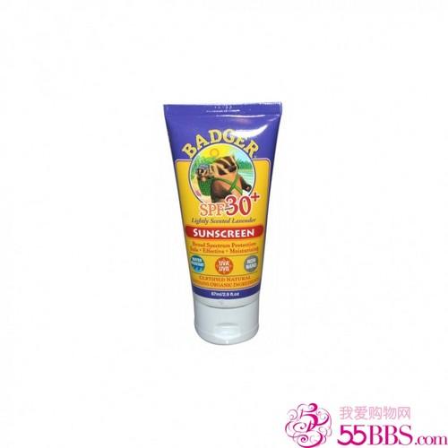 BADGER有機防曬霜 SPF30 有機,富含有機特級初榨橄欖油、蜜蠟、乳油木果油等溫潤成分,加入天然維生素E和有機沙棘果,抗氧化力強大,淡淡的薰衣草香味,趕走夏季的焦躁情緒。