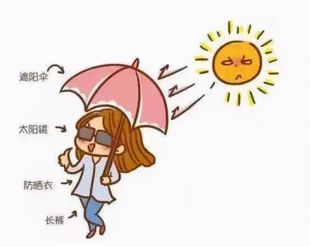 可以選擇長(zhǎng)袖長(zhǎng)褲、防曬傘、防曬帽、墨鏡等,口罩(尤其是防曬口罩)也有一定的防曬力度。