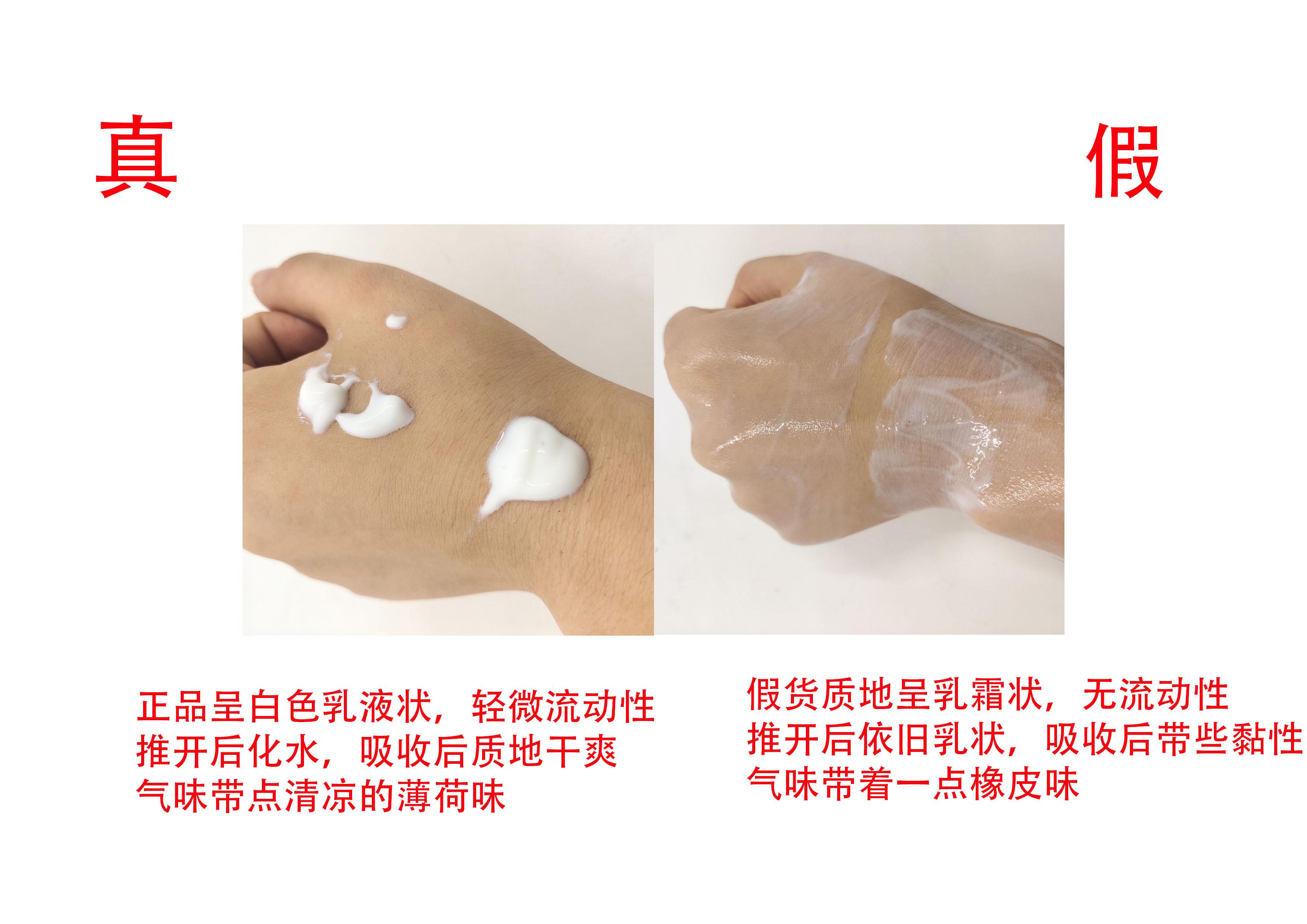 假貨質地呈乳霜狀無流動性,圖開呈水乳狀,氣味帶些膠質的橡皮味