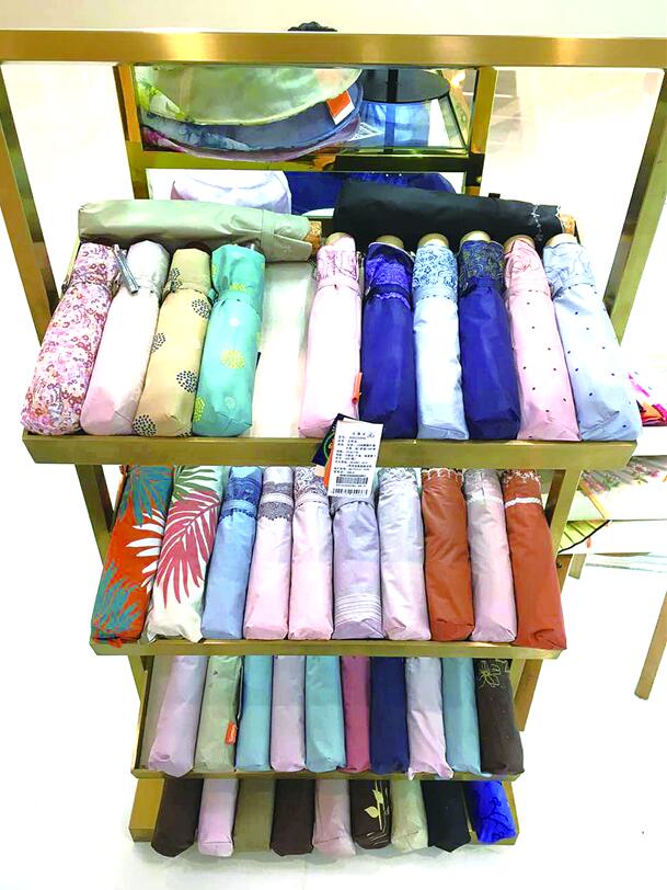 “太陽傘中黑膠傘受女性朋友喜愛,這是因為黑色的傘透光率是低的,在烈日下,往往能讓人感覺涼快一些?!辟F陽國貿(mào)商場KORSSAN太陽傘專柜售貨員表示,“很多消費者有一個慣性的認識,就是只要傘里面是黑色的就是黑膠。其實不然,傘布是黑色不代表就是黑膠,黑膠指的是遮光材料的涂層??捶罆癫粌H只是看面料,譬如,同是聚酯纖維的傘布面料下,涂層以黑膠為佳,其次是色膠、銀膠等?!?/p>