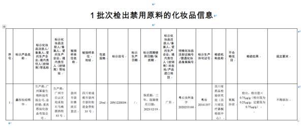 12月21日,藥監(jiān)局發(fā)布關(guān)于1批次化妝品檢出禁用原料的通告。通告稱,經(jīng)四川省藥品檢驗(yàn)研究院(四川省醫(yī)療器械檢測中心)檢驗(yàn),標(biāo)簽標(biāo)示為生產(chǎn)商廣州冪姿生物科技有限公司、總經(jīng)銷重慶郡燦化妝品有限公司生產(chǎn)的鑫彤祛痘精華,檢出禁用原料“氧氟沙星”。藥監(jiān)局已要求廣東省藥品監(jiān)督管理部門對(duì)上述不符合規(guī)定的化妝品涉及的備案人依法立案調(diào)查,責(zé)令相關(guān)企業(yè)立即依法采取風(fēng)險(xiǎn)控制措施并自查整改;各?。▍^(qū)、市)藥品監(jiān)督管理部門責(zé)令相關(guān)化妝品經(jīng)營者立即停止經(jīng)營上述化妝品。