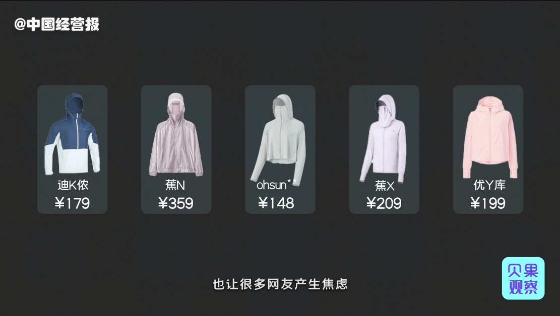 比如,憑借著無尺碼內(nèi)衣走紅的蕉內(nèi),防曬品類也在逐年增加,為了迎接今年的酷夏,蕉內(nèi)就安排了王一博與劉佩琦老師來了一場“涼皮大戰(zhàn)”。知名戶外品牌CAMEL駱駝也推出了熊貓專業(yè)防曬衣系列,就連專做羽絨服的波司登,也入局了防曬服市場,貴的一款防曬服售價高達1299元。