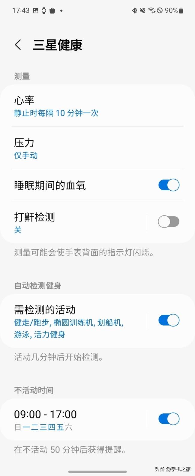 至于健康監(jiān)測功能,三星Galaxy Watch5 Pro使用研發(fā)的三星BioActive身體活力傳感器,將光學心率傳感器、生物電阻抗分析等健康傳感器集成于一體,借助與肌膚的接觸更貼合,能具備更準確的量測數(shù)據(jù)。除常規(guī)的心率、血氧等健康追蹤功能外,將手指搭在手表的兩個按鍵上還能檢測體脂、骨骼肌等信息。在睡眠時,三星Galaxy Watch5 Pro還能夠檢測打鼾,主動跟蹤各個睡眠階段(清醒、淺層、深度、快速眼動睡眠),并進行數(shù)據(jù)分析。