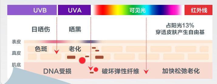 為什么防曬這么重要呢?我們都知道,雖然曬太陽雖然舒服又補鈣,但它所產(chǎn)生的紫外線卻是皮膚老化的“元兇”,它不僅會破壞皮膚的彈性纖維,加快松弛老化,讓人被曬黑、曬傷,產(chǎn)生色斑,而且完全不會隨著四季變換而減退,在光照充足的夏季更是達到峰值。
