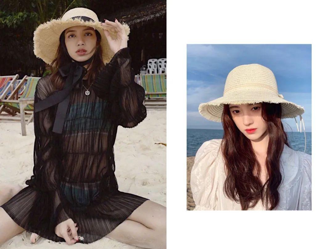 編織縫隙較大的網(wǎng)洞草帽讓陽(yáng)光斑駁而下,把迪麗熱巴和李沁的文藝范兒也烘托出來(lái)!