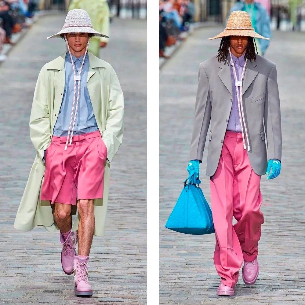 布置在帶有咖啡館風(fēng)情的Place Dauphine上,Louis Vuitton 2020春夏秀場(chǎng)上展示了伴有狹長(zhǎng)帽繩的尖頭弧頂?shù)膶掗苊保⒁悦装?、薰衣草紫、藍(lán)莓黑等漿果色演繹,平衡了街頭與華麗兩種看似矛盾的氣質(zhì)!
