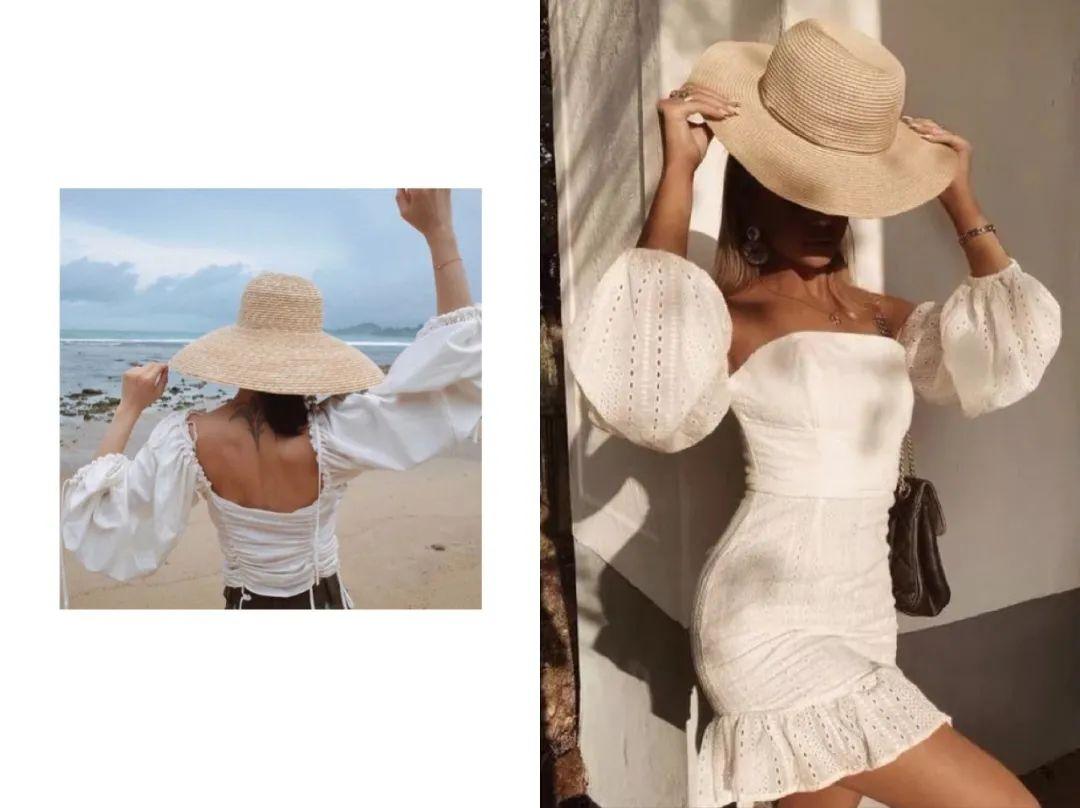 鐘形寬檐帽和泡泡袖也很搭,帽檐低垂,不露聲色地優(yōu)雅!