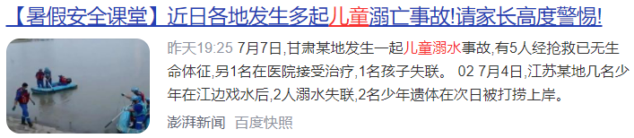 夏季,特別是暑假,是孩子意外事故的高發(fā)期,而其中常見(jiàn)的就是溺水。