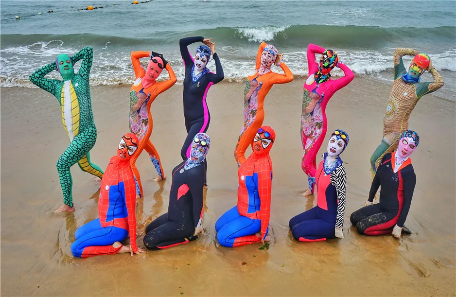 一種游泳時使用的尼龍防曬頭套,透氣性好。由青島人張式范發(fā)明。