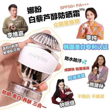 今天安利的這款爆紅全網(wǎng)的"防曬新星",你一定會喜歡!也是很多明星化妝包里,必不可少的一款防曬霜——RAPERN娜盼白藜蘆醇防曬霜