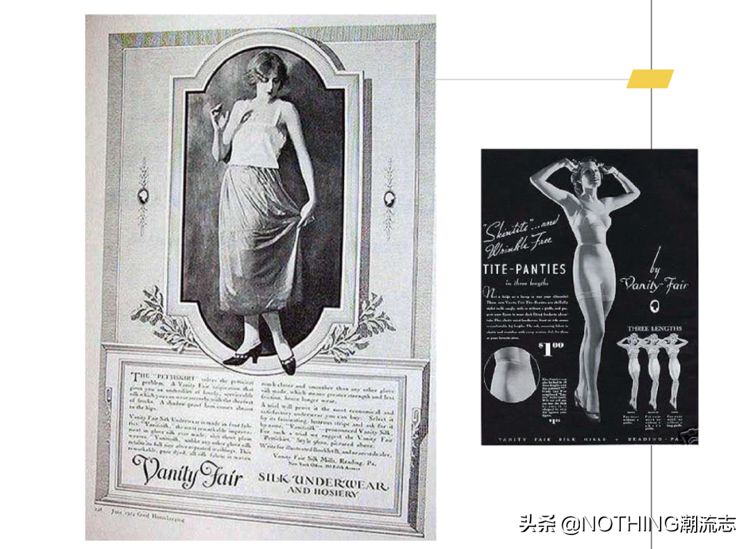 1914年公司更名為斯古吉爾絲綢廠,進軍內衣市場,并且成功積累了一大筆財富,在1919年注冊企業(yè)品牌名-Vanity Fair(名利場絲綢),如今的VF Corporation就是根據(jù)之前的名稱首字母縮寫而來。