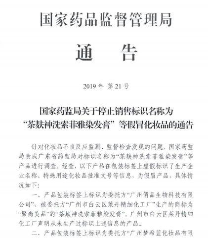 “茶麩神洗索菲雅染發(fā)膏”等產(chǎn)品進(jìn)行調(diào)查。