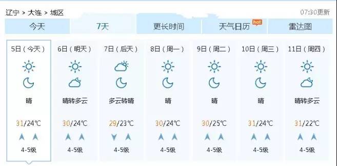 這溫度已經是2000年以來!高!溫!16年來,遼寧第一次這么熱!熱!熱!看看大連下一周的天氣預報,也都是大太陽加上30幾度的天氣