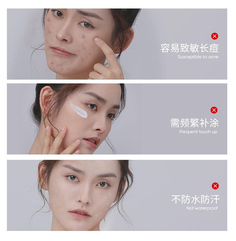 而如今,市面上防曬霜魚龍混雜,一些厚重,不防水防汗的防曬霜,在炎熱的夏日嚴(yán)重影響著我們的妝容,一些成分不合格的防曬霜會(huì)導(dǎo)致我們過敏、長痘等等。