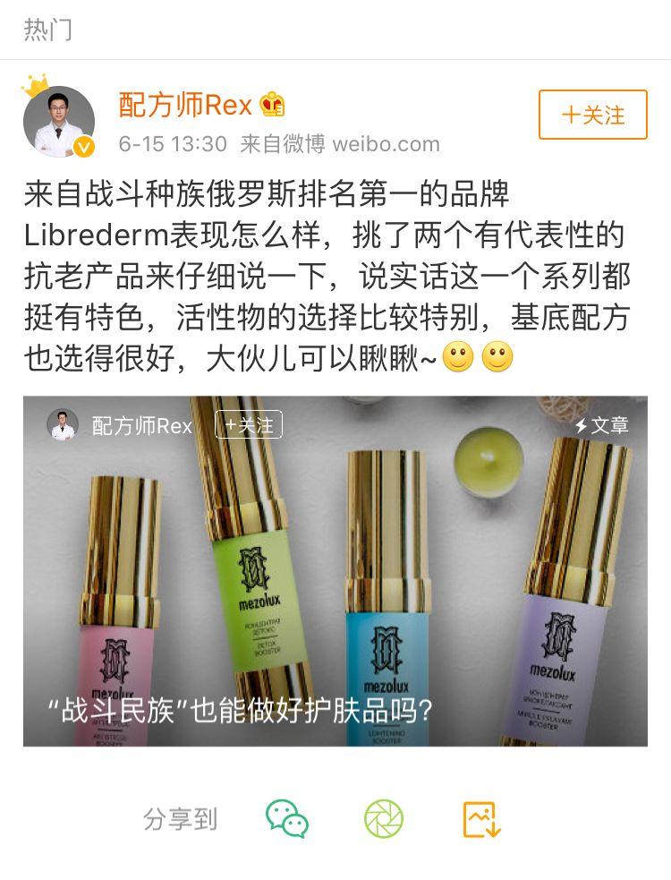 才22歲的閆娜已開始使用抗衰抗皺產(chǎn)品。通過微博上美妝博主的種草文,她知道了一個俄羅斯品牌LIBREDERM,根據(jù)文章對配方的解讀和分析,她種草了LIBREDERM的多精華,相信這款精華能迅速消除皮膚暗沉、細(xì)紋等問題。