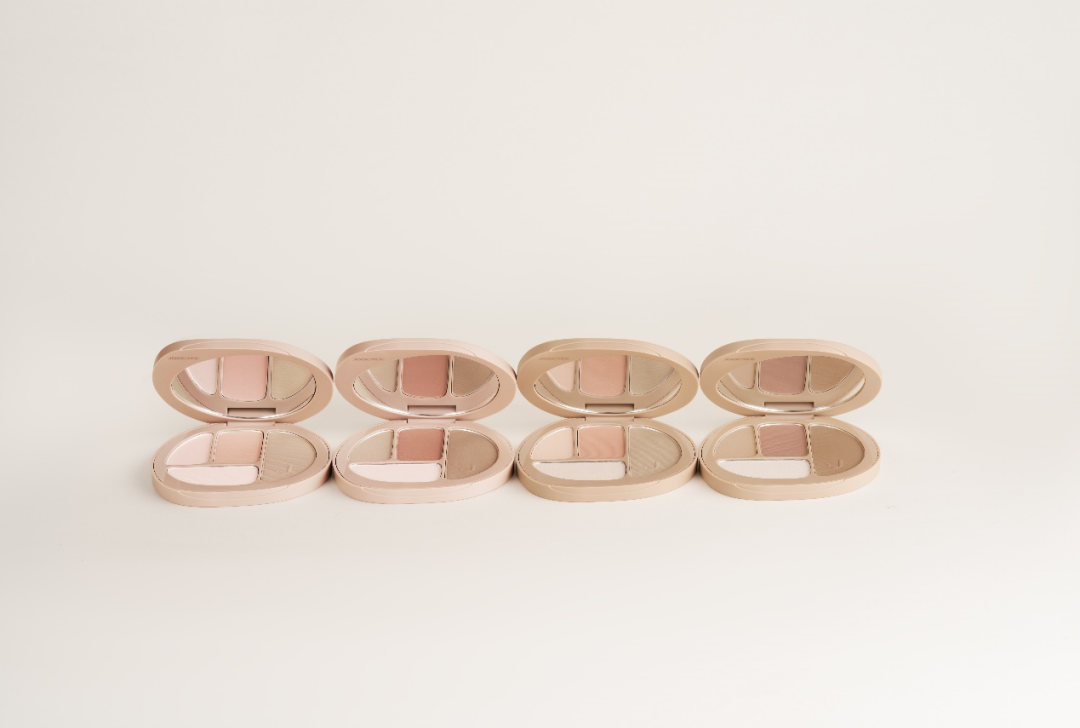 基于色彩哲學中的膚色研究,酵色也為冷暖膚色分別定制兩個色系,共推出四款產(chǎn)品。「輪廓盤」特調(diào)4種質(zhì)地,包括“會呼吸”腮紅色 、“半透明”陰影色、“粉狀遮瑕”提亮色和“補光燈”面中膨脹色。