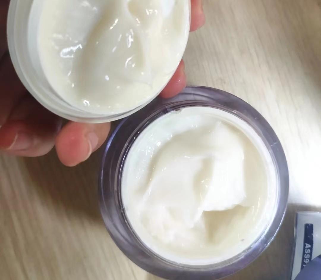 面霜質(zhì)地也好像芝士一般濃厚,觸感潤澤軟密,接觸皮膚后融化后膚感更細(xì)膩。油脂含量比較充足,更適合偏干性膚質(zhì)嘗試。
